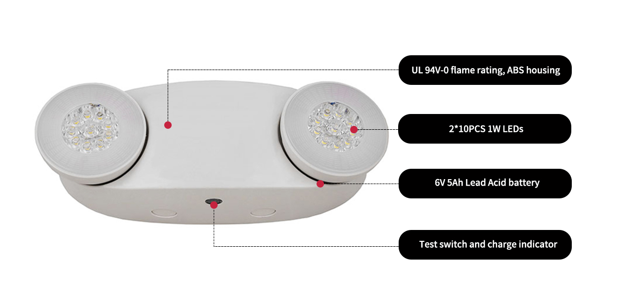 UL/CUL 1200lm Höga lumen utmatning Dubbelhuvud LED -nödljus