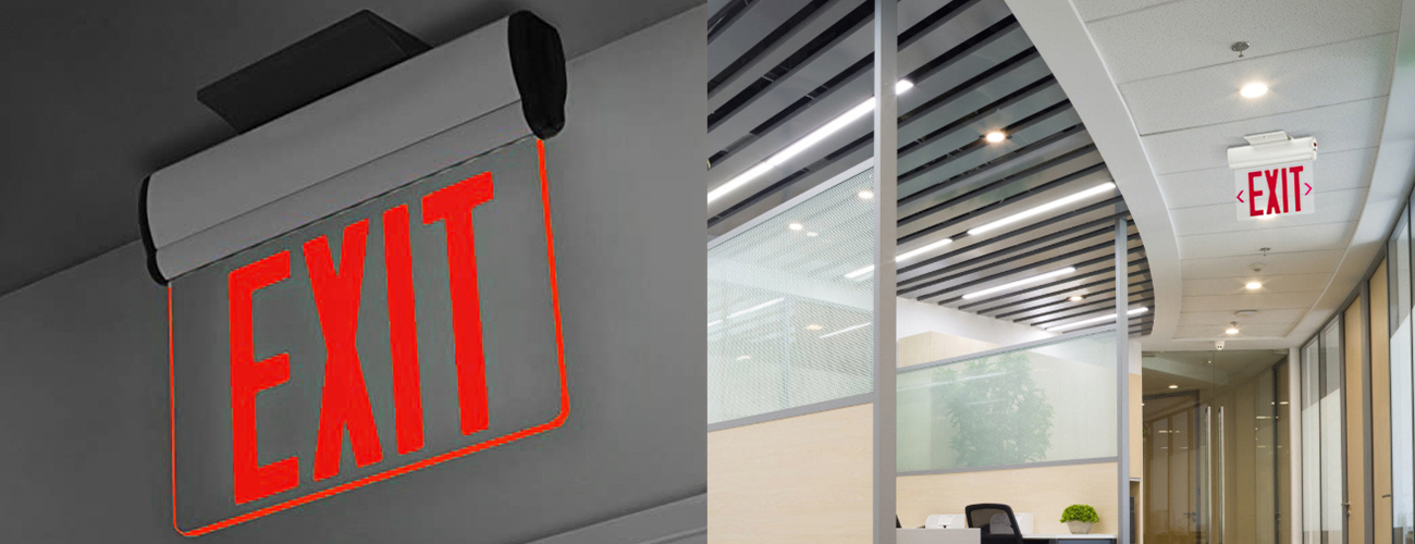 *Illumination - Denna kant upplyst utgångsskylt serie ger en lång livslängd belysning. Enheten är konstruerad med ett Red High Output LED -kort.  Energikonsumtion är klassad till mindre än 3 watt för endast AC -modellenheter. Batteriets säkerhetskopieringsenheter Energikonsumtion är klassad till mindre än 1 watt.