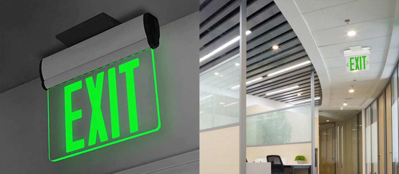*Illumination - Denna kant upplyst utgångsskylt serie ger en lång livslängd belysning. Enheten är konstruerad med en grön högutgångsledtavla.  Energikonsumtion är klassad till mindre än 4 watt för endast AC -modellenheter. Batteriets säkerhetskopieringsenheter Energikonsumtion är klassad till mindre än 1 watt.