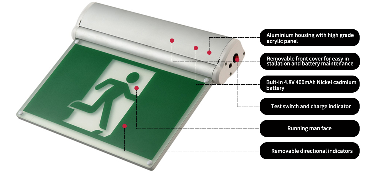 Hem / Produkt / Utgångsskylt / Running Man Exit Sign / Jelrm aluminium 6 tum löpande man ledde nödutgångsskylt